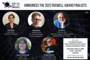 Paul Martz is administering self-defibrillation after finding out that his story, Dr. Harriet Hartfeld’s Home for Aging AIs, is a finalist for the 2022 Omega Sci-Fi Roswell Award. Prizewinners will be announced during the May 21 awards ceremony, in which finalist stories will be read aloud by celebrity narrators. Attend …